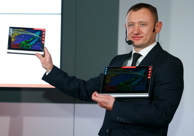 Новинки в категории планшетов презентовал руководитель направления – Виталий Годзула. Среди представленных гаджетов модели Yoga Tablet 2 с диагональю 8 и 10 дюймов на базе ОС Android, Yoga Tablet 2 с диагональю 10 дюймов на ОС Windows, а также Yoga Tablet 2 Pro.