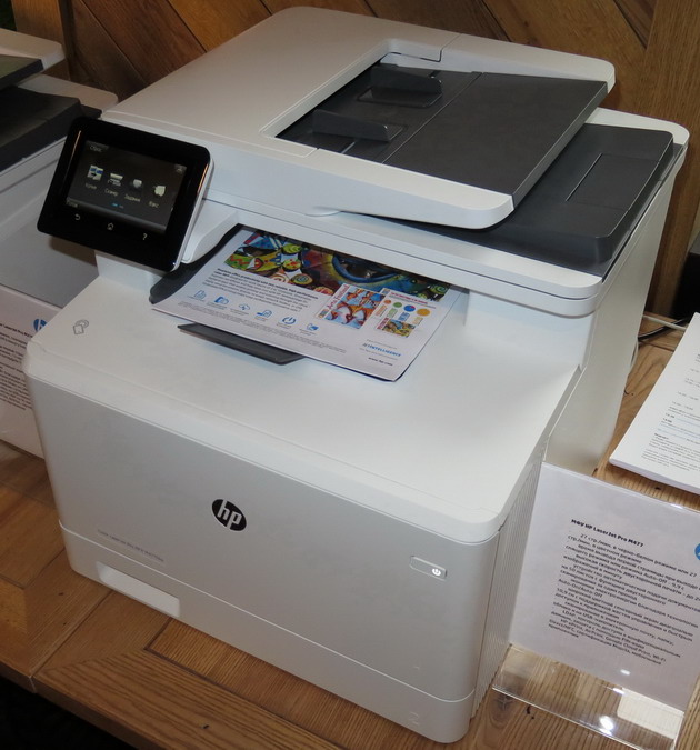 Осенью 2015 года вышло цветное многофункциональное устройства HP Color LaserJet Enterprise MFP M577, предназначенное для рабочих групп до 15 пользователей и обеспечивающий объем печати до 7500 страниц в месяц. Среди ключевых особенностей аппарата: скорость односторонней и дуплексной печати составляет 38 стр/мин, на печать первой страницы с выходом из режима ожидания требуется 5,9 секунд, а с выходом из режима сна — 8,6 секунд. Также стоит отметить автоматическое двухстороннее сканирование, цветной картридж на 9500 копий, поддержку функций FutureSmart, ОХР, Airprint, ePrint и NFC Touch .