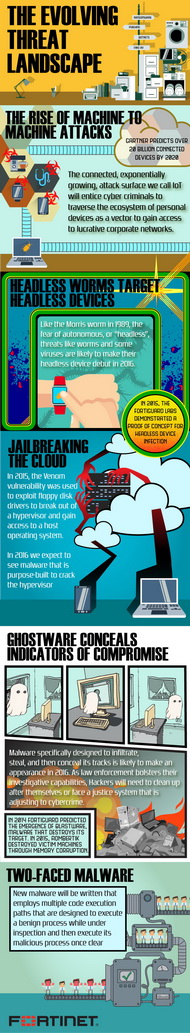 В прошлом году мы имели дело с несколькими громкими нападениями, которые выявили слабые стороны устройств Интернета вещей. В 2016 году ожидается дальнейшее развитие вредоносных программ, использующих протоколы связи между подобными устройствами. Используя уязвимости Интернета вещей, киберпреступники получат новые средства доступа к корпоративным сетям.