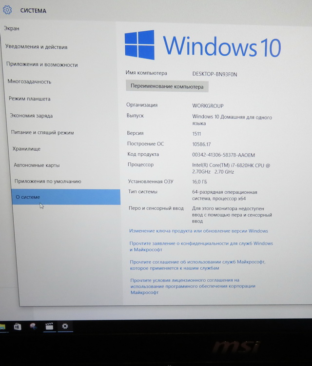 Данный ноутбук работает на Intel Core I7 шестого поколения