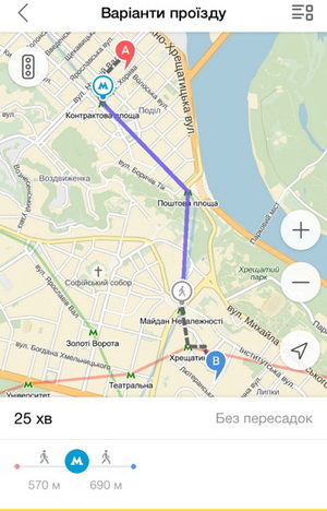 Чтобы построить маршрут, достаточно указать в приложении место отправления и место назначения. Яндекс.Транспорт понимает не только адреса (скажем, Верхний Вал, 50), но и названия — например, можно узнать, как доехать до театра Франко или ботанического сада им. Фомина.