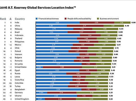 Составители в уже седьмом издании рейтинга указывают на усиливающуюся роль технологического прогресса в том, как работает аутсорсинг. Теперь имеет значение не только где расположена рабочая сила, но и как именно или кем именно выполняется работа. Авторы исследования также уверены, что автоматизация будет определять сервисную экономику в ближайшие годы.