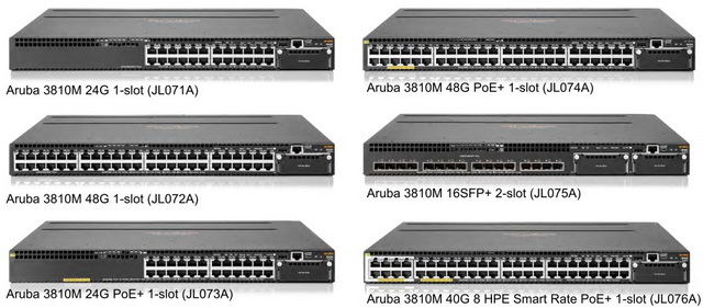 Семейство HPE Aruba включает серию начального уровня 2530, серии стекируемых L3 коммутаторов 2920 и 3800, а также компактные модульные шасси серии 5400R. Особенностью коммутаторов этих серий является использование семейства микросхем ProVision ASIC разработки НРЕ. Наличие собственного цикла разработки и производства ASIC позволяет производителю быстро реагировать на потребности рынка и первому предлагать своим заказчикам продукты с поддержкой новых технологий и стандартов, требующих реализации "в кремнии".