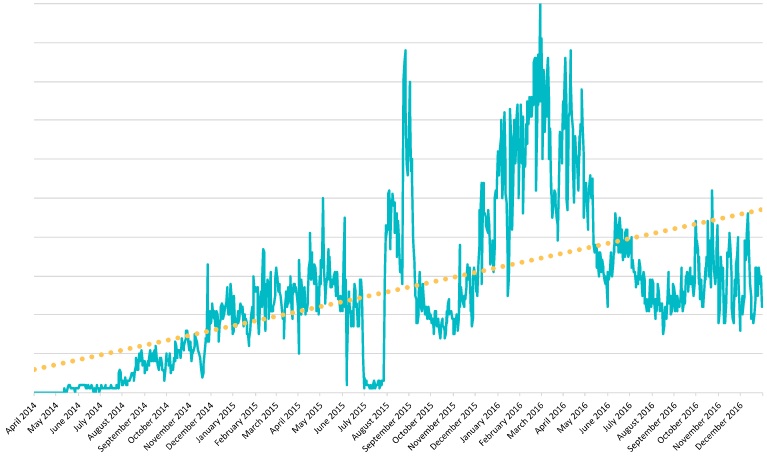 Основные тенденции в изменении числа обнаруженных троянов-вымогателей, по данным ESET: