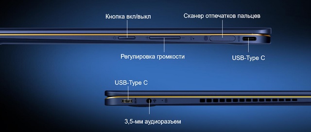 Порты: 2 x USB-Type C (3.1); 3,5-мм комбинированный разъем с микрофоном