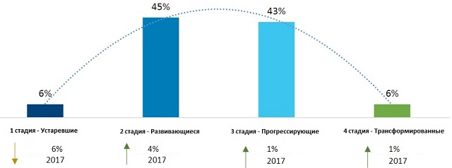 В этом году исследование показало, что зрелых компаний стало больше, а бизнес стал рассматривать процесс трансформации как стратегический императив.