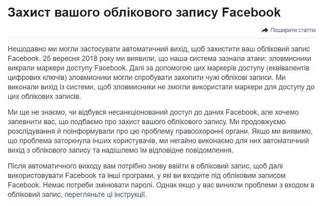 После атаки на Facebook 25-26 сентября пользователи социальной сети получили письмо такого содержания: