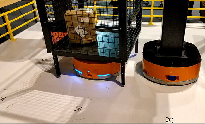 Решение от партнеров Huawei: транспортные роботы перемещаются с места на место, использую специальные маркеры на полу. Huawei поставляет коммуникационные системы для этих роботов.