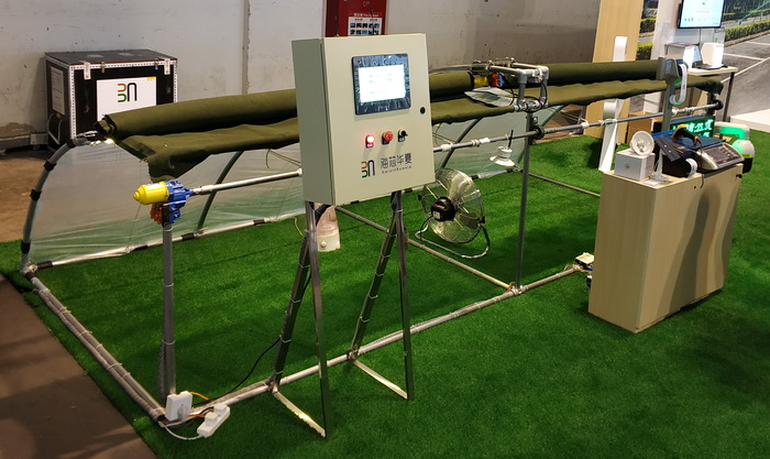 Умная теплица, широко используемая в городском округе Вэйфан в Китае. Сенсоры определяют температуру и влажность воздуха и почты, и в результате открывают или закрывают окна, теплоизоляционную пленку и т. д. Такой метод позволяет добиться лучшей урожайности и снизить объем вносимых удобрений.