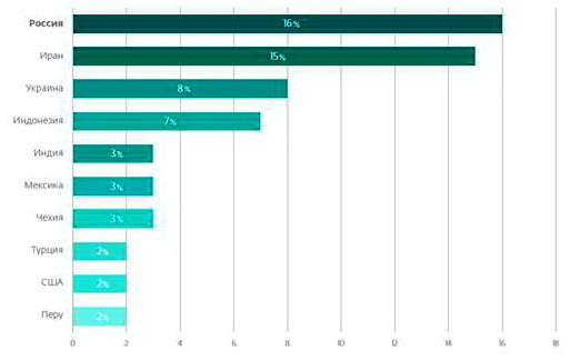 Согласно данным ESET, РФ возглавила рейтинг стран с наибольшим числом вредоносных программ для платформы Android, Украина оказалась на 3-м месте: