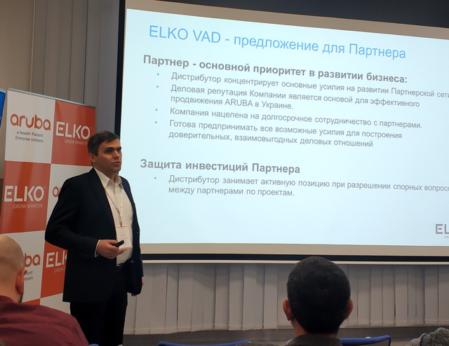 В сентябре этого года между ELKO Ukraine, Value Added дистрибьютором, и Sophela, эксклюзивным представителем Hewlett Packard Enterprise, было заключено партнерское соглашение, благодаря которому компания теперь может предложить полный спектр разработок и сервисов Aruba своим партнерам и украинским заказчикам. В конце ноября в smart-центре компании ELKO прошла встреча представителей дистрибутора и ARUBA с партнерами, на которой участники обсудили тренды рынка, решения на базе портфеля ARUBA, бизнес-кейсы, приоритетные отрасли, реальные истории успеха украинских и зарубежных компаний.