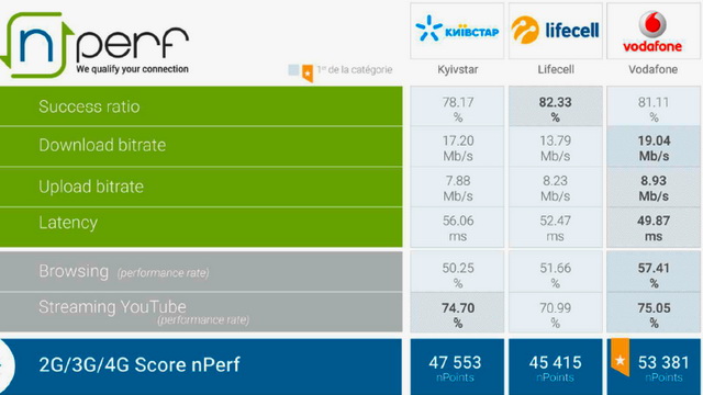 Тестирование сетей украинских операторов показало, что самая высокая скорость мобильного интернета доступна клиентам Vodafone. Исследование проводилось французской компанией nPerf, одним из лидеров тестирования телекоммуникационных сетей с целью оценки скорости и качества доступа к сети интернет. Отчет основан на данных с пользовательских устройств при замерах скорости в приложении nPerf. Оценка включает результаты тестов скорости загрузки и выгрузки, задержки, веб-серфинга и просмотров потокового видео.