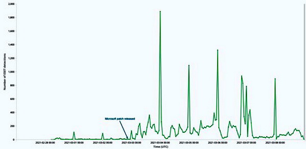 Команда ESET обнаружила более 10 разных APT-групп, которые используют новые уязвимости Microsoft Exchange для компрометации почтовых серверов. В частности, исследователи ESET зафиксировали более 5000 зараженных почтовых серверов. Серверы принадлежат предприятиям и правительственным учреждениям по всему миру, в том числе и довольно известным.