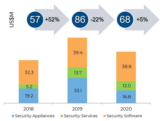 По данным исследования аналитического агентства DX Agent в 2020 рынок информационной безопасности (IT Security) в Украине сократился почти на 22%, до 68 млн. долл. в ценах заказчиков. Отметим, что в 2019 году этот рынок вырос на существенные 52%.