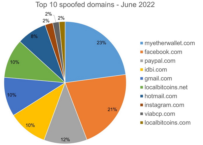 Нижче наведено список 10 найпоширеніших цілей для фішингових сайтів.