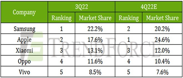 Втім вендори, що входять в топ-5, показали різноспрямовані результати. Наприклад, Samsung збільшила свою частку ринку на 2%, китайські вендори Xioami, Oppo, Vivo також дещо покращили свої результати. А от Apple втратила цілих 7% у зв’язку з серйозними проблемами у виробництві нових iPhone. Але аналітики TrendForce вважають, що у 4-му кварталі ситуація покращиться.