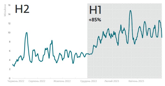 За даними телеметрії ESET, кількість заблокованих спроб підбору пароля до MSSQL зросла з 940 мільйонів до 1,7 мільярда в першій половині 2023 року. Також варто зазначити, що найпопулярнішими методами мережевих атак були підбір пароля та використання уразливості Log4Shell, яка дозволяє зловмисникам запускати довільний код на певному сервері.