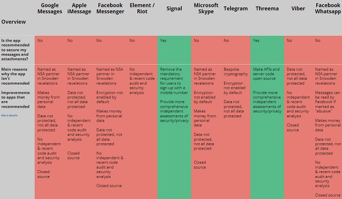 Тому найкраще брати до уваги результати незалежних тестувань подібного функціоналу (наприклад, це можна зробити за посиланням  https://www.securemessagingapps.com/ ). Адже кожен сервіс реалізовує його, використовуючи свої алгоритми, що можуть мати певні недоліки.
