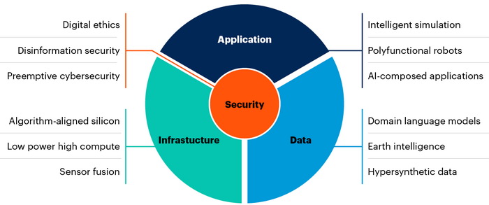 Білл Рей, почесний віце-президент-аналітик Gartner, вважає, що «…інноваційні досягнення, такі як архітектура коду з підтримкою генеративного штучного інтелекту (GenAI), захист від дезінформації та розвідка Землі, забезпечать диференціацію, необхідну для того, щоб допомогти підприємствам вирватися вперед з точки зору даних і продуктових пропозицій».