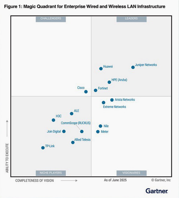 Щороку Gartner оцінює ринкові тенденції інформаційних технологій, визначаючи напрями розвитку сфери та формуючи переліки наймасштабніших і найвпливовіших постачальників на ринку. В групу лідерів цьогоріч потрапили Juniper Networks, Huawei, HPE (Aruba) та Fortinet. Притому компанія Huawei стала єдиним виробником обладнання в групі лідерів, що базується не у Північній Америці.