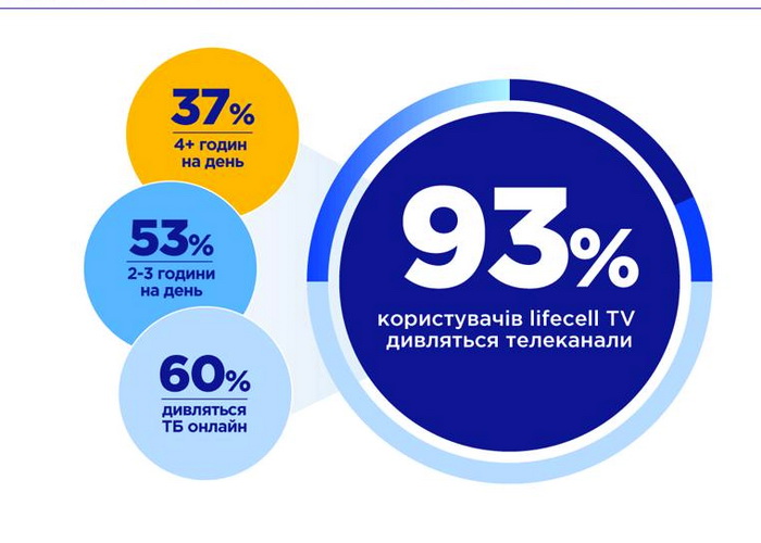 Серед користувачів lifecell TV переважна більшість — 93% — дивляться телеканали. Для порівняння, серед абонентів, які не користуються сервісом, таких 66%. Старша аудиторія (35+) звертається до телебачення частіше, ніж молодша.